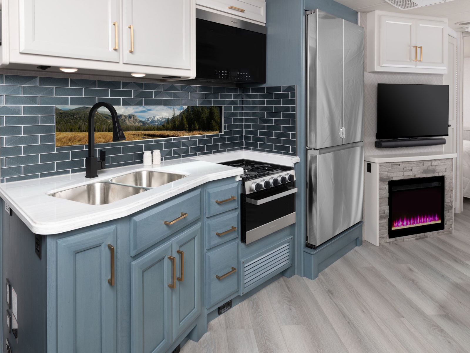 Introducing our new Adap-table® dinette with pop-up TV! (35GL standard, 33C and 35K optional)