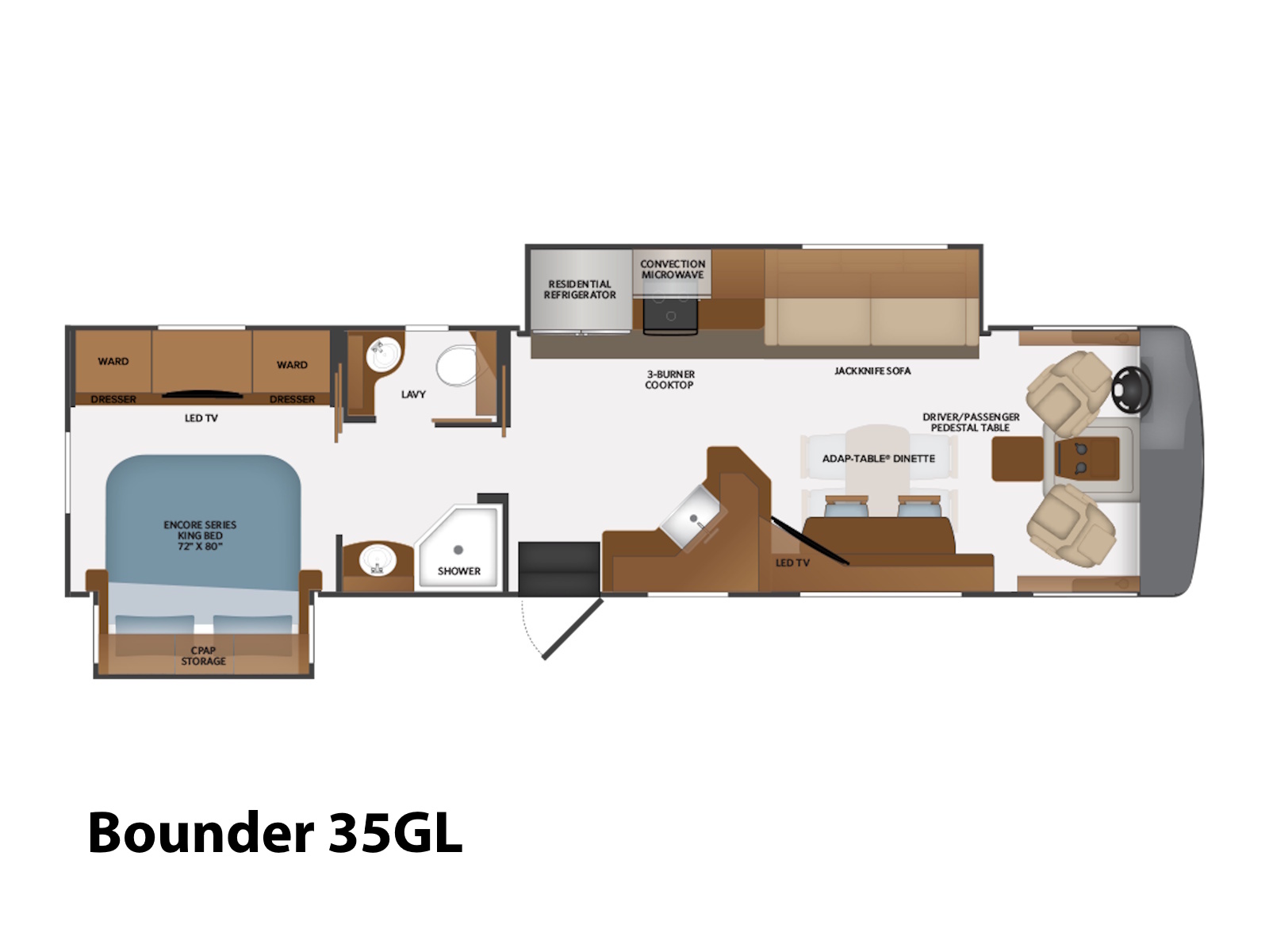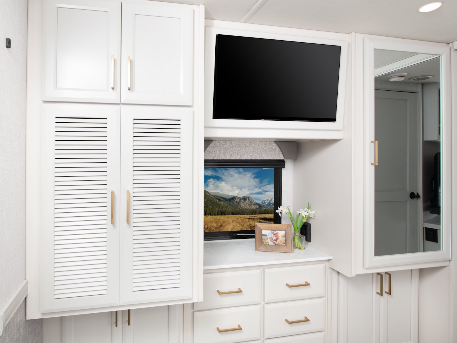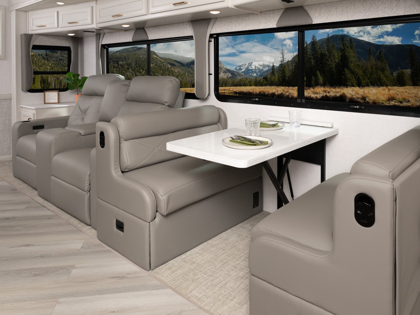 Introducing our new Adap-table® dinette with pop-up TV! (35GL standard, 33C and 35K optional)