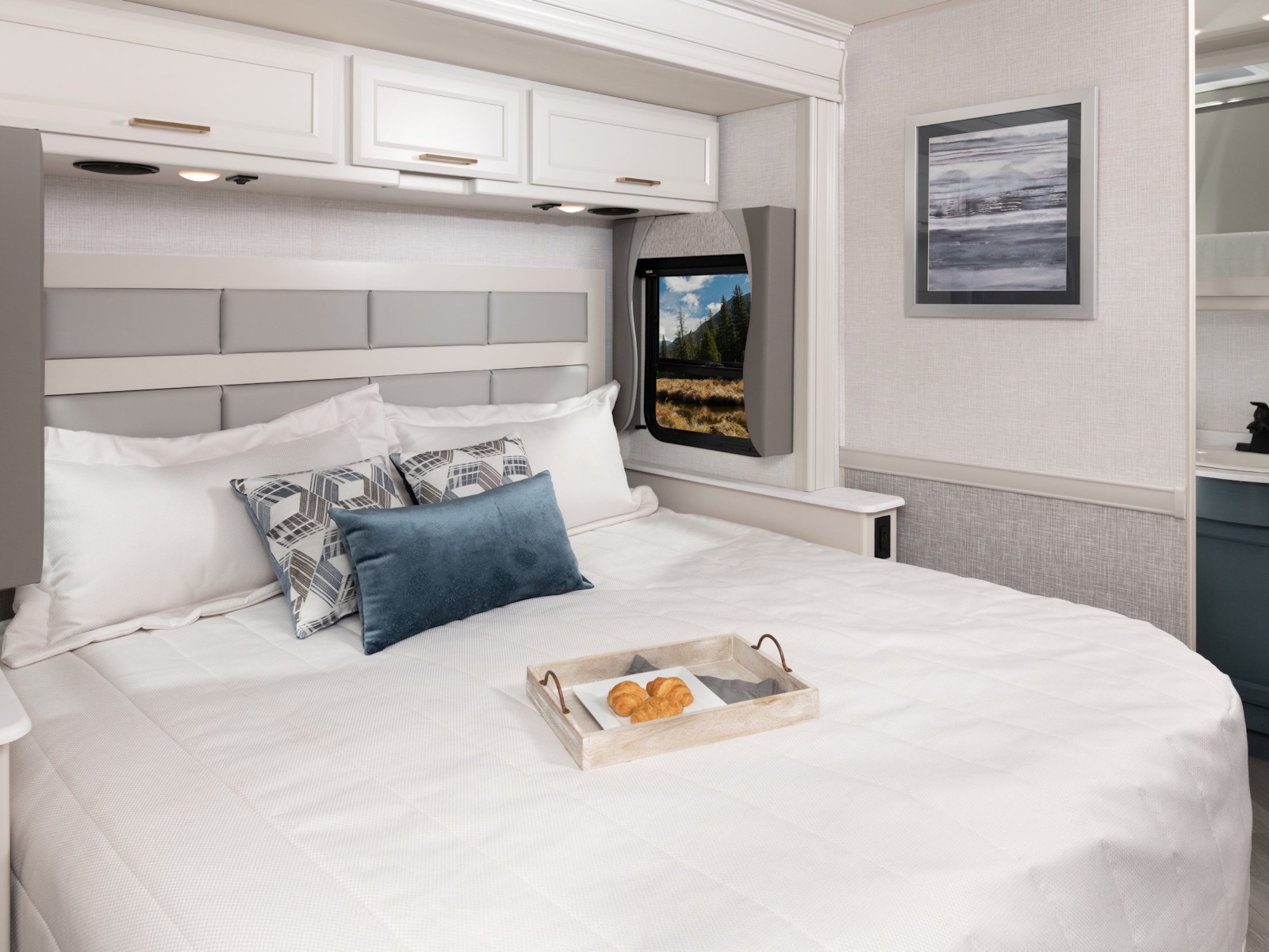 Introducing our new Adap-table® dinette with pop-up TV! (35GL standard, 33C and 35K optional)