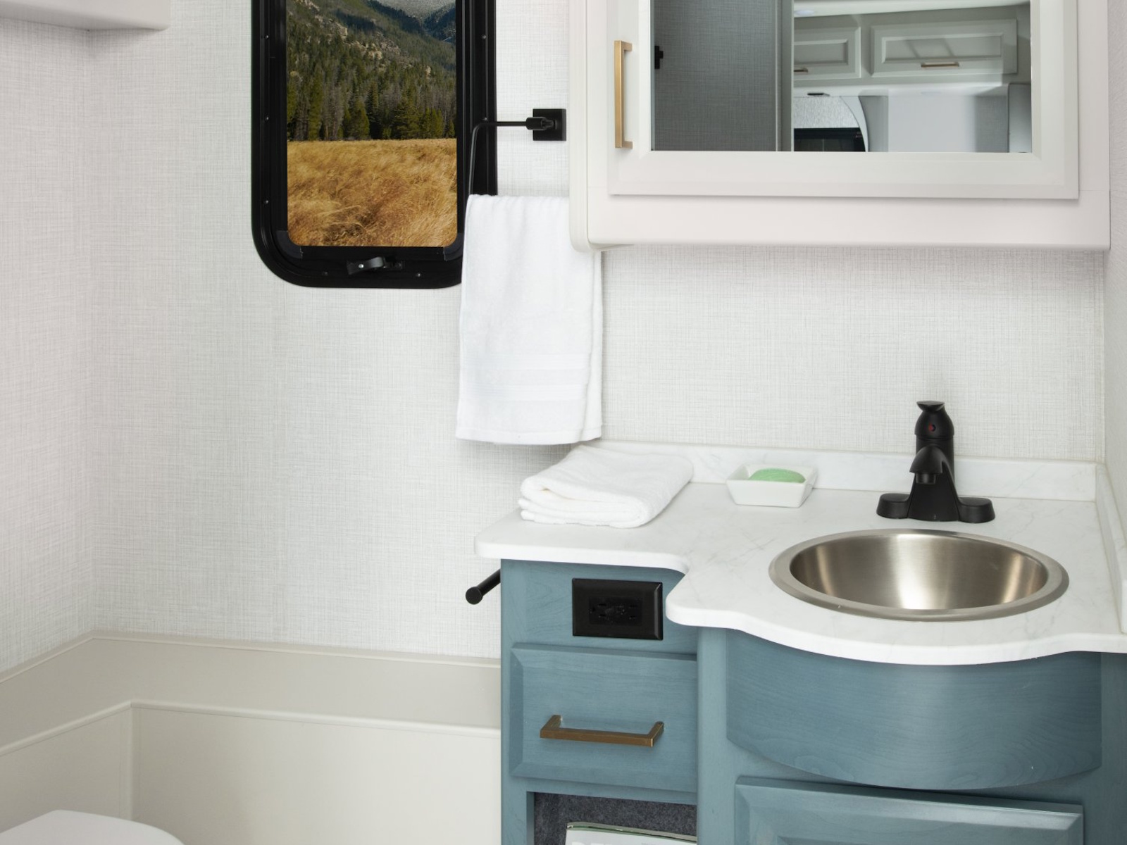 Introducing our new Adap-table® dinette with pop-up TV! (35GL standard, 33C and 35K optional)