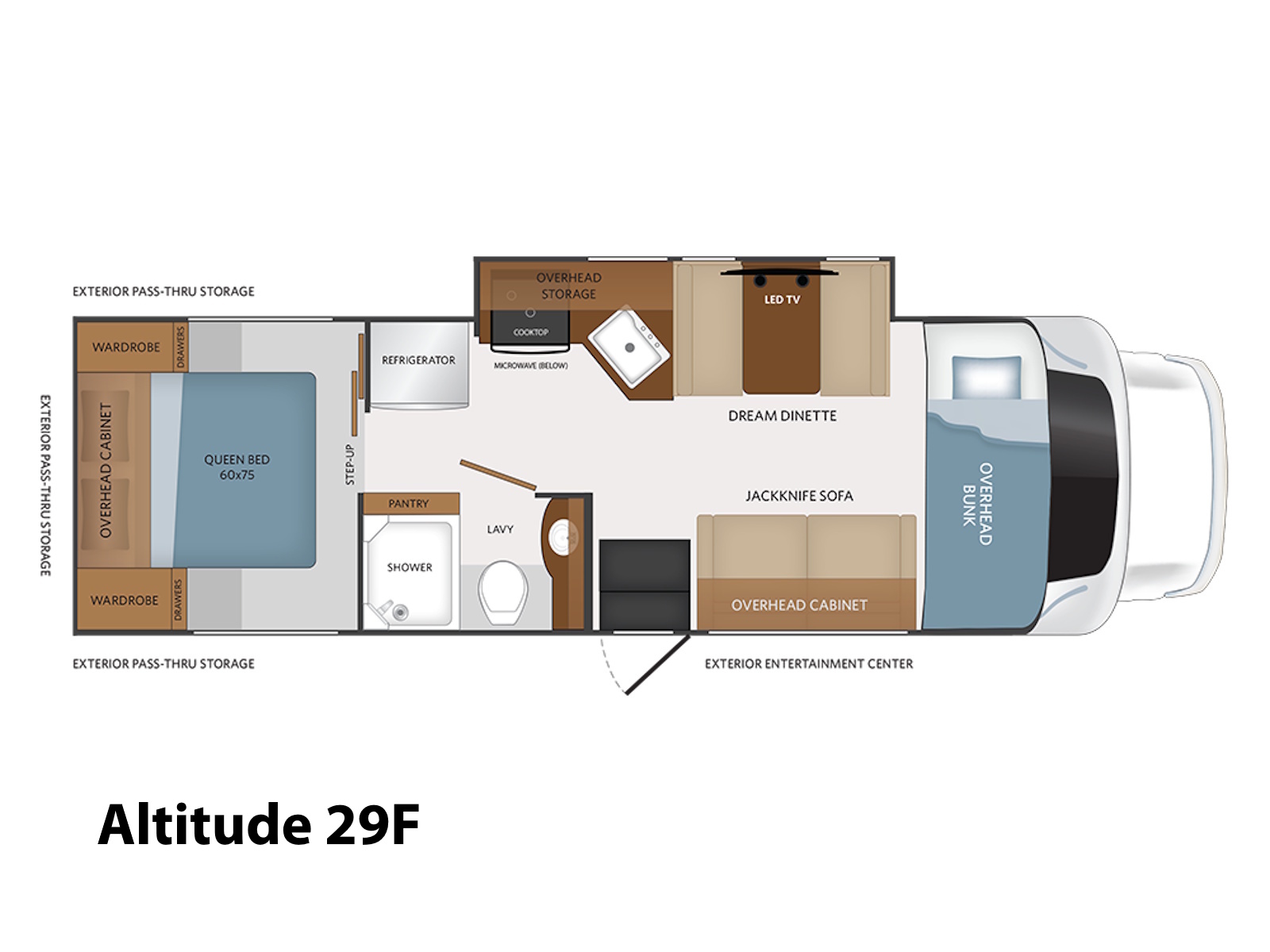 Leading the way in class C comfort and design, the Altitude features the industry’s largest radiused entry door for enhanced security and convenience