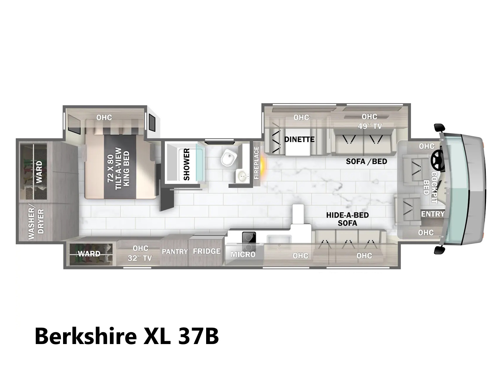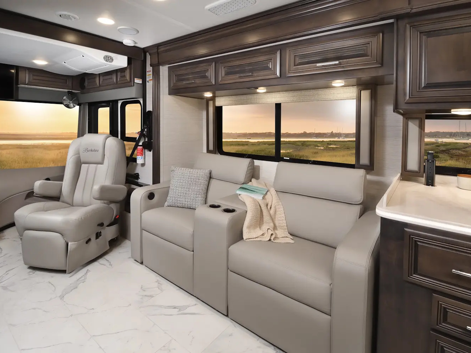 Each floorplan is paired with a Freightliner XCR raised rail chassis and will feature a Cummins engine along with a Allison transmission that provide unmatched power, confidence and comfort while traveling down the road. Every Berkshire motorhome is meticulously hand-crafted and tested for 16-weeks before leaving the factory. Come experience the Limited Build, Limitless Quality of Berkshire.