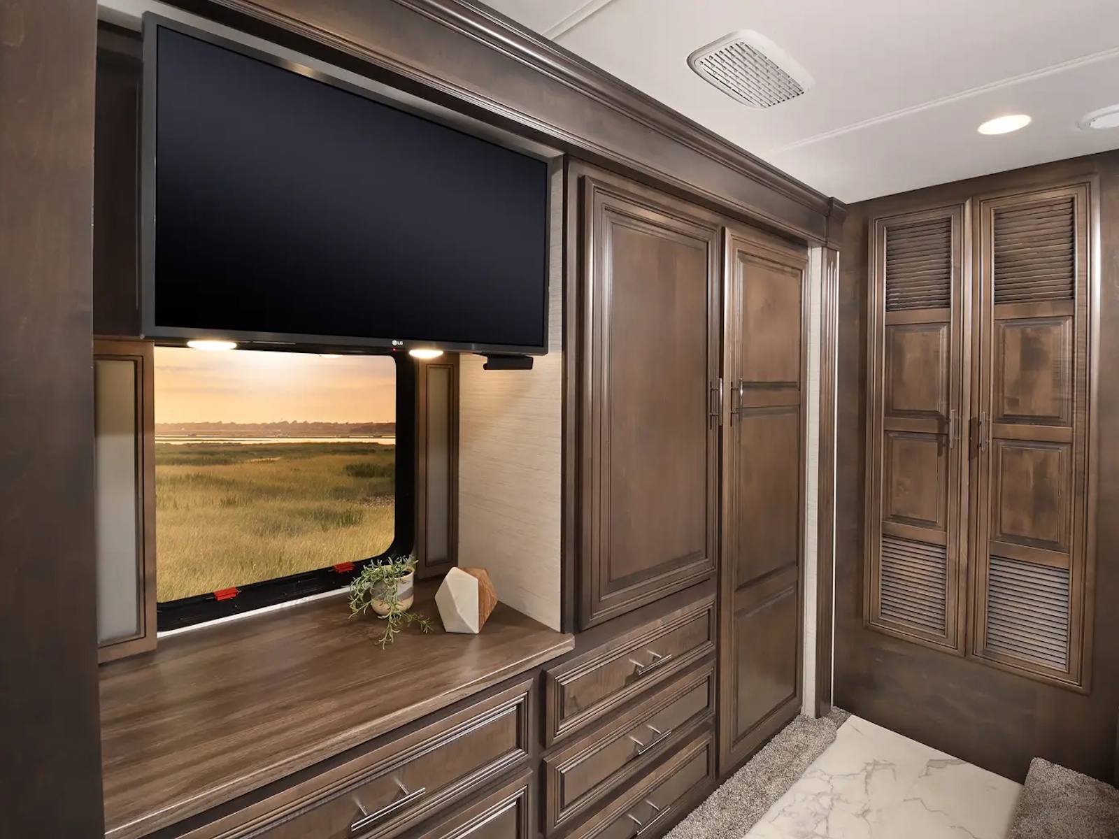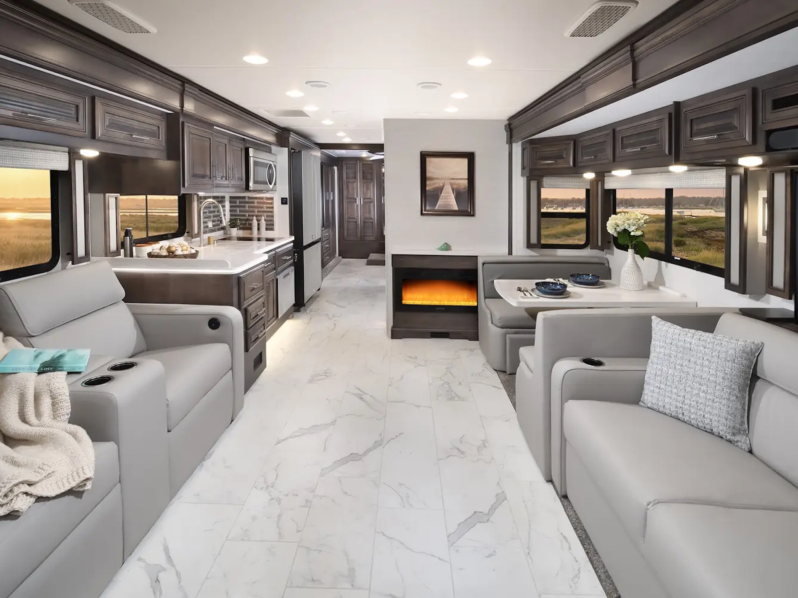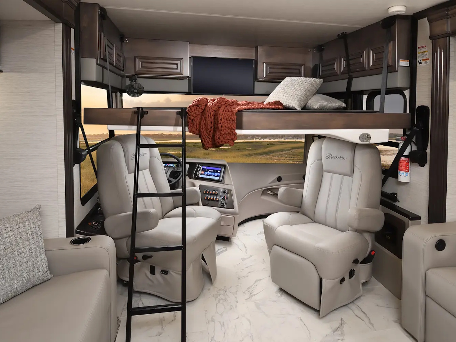 Discover the pinnacle of luxury and performance with Berkshire diesel class A motorhomes. The unparalleled choice for travelers seeking extraordinary comfort, innovative technology, modern features, residential styling, and world-class customer service supported by Forest River.