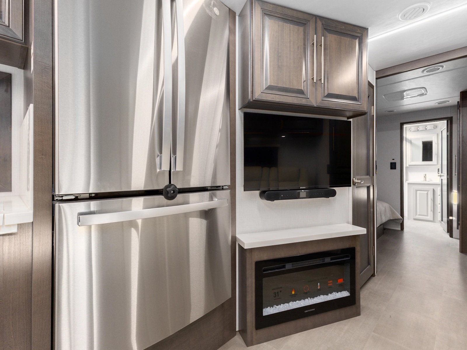 Outside Entertainment Center w/ 40 in LED TV w/ Radio and External Speakers | 40 in LED Main TV w/ Sound Bar | 32 in LED Bedroom TV w/Flip Up