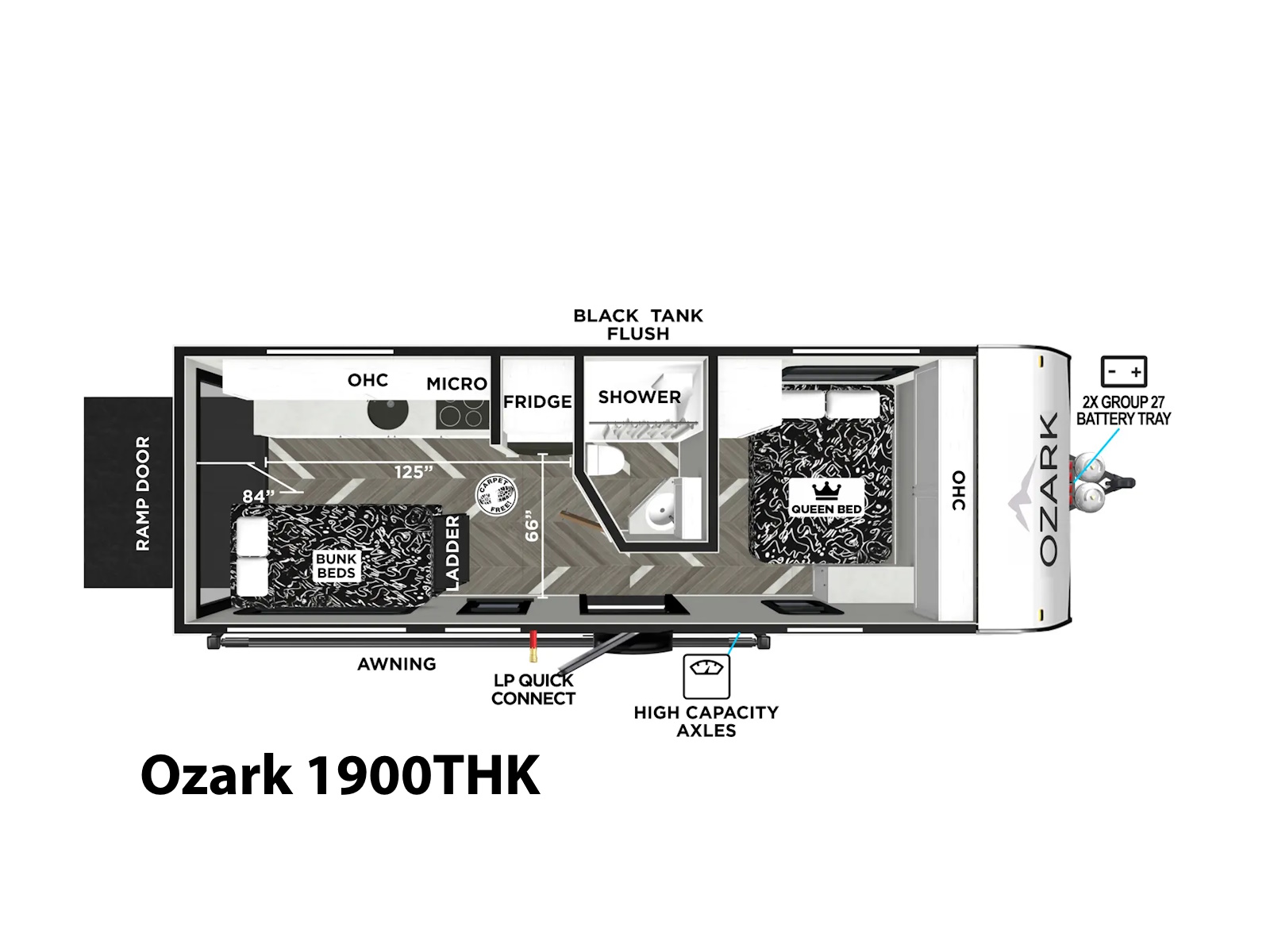 Ozark travel trailers and toy haulers are lightweight, easy to tow, and loaded with standard amenities such as oversized windows, high capacity tanks, and stainless-steel appliances. The unique and spacious floorplans pack in all the features you need and none that you don’t, all while maintaining smooth styling, capability and value. Built with the weekender in mind, all you need to worry about is where adventure will take you next!
