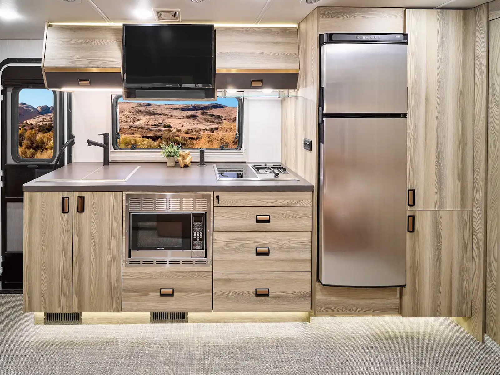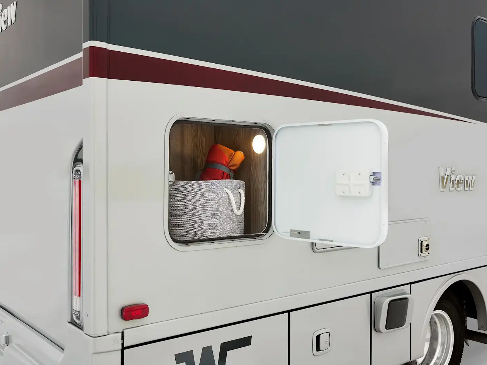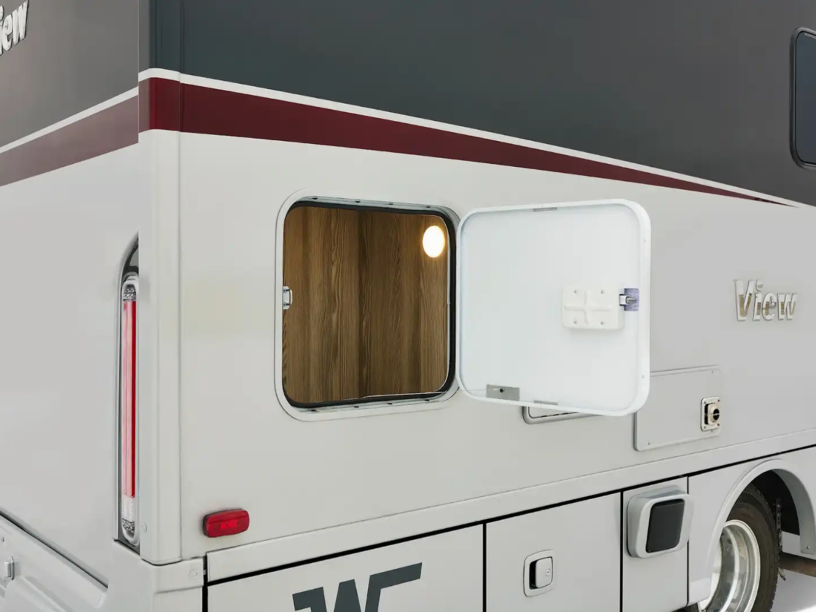 Experience the newly updated View® and Navion® 24D, now featuring refreshed interior décor, sleek new exterior styling, and increased cargo-carrying capacity for greater flexibility on the road. Inside, enjoy a luxurious galley, plush U-shaped dinette with footrests or available theater seating, a versatile sofa that transforms into a comfortable Murphy+ bed with the WinnSleep® system, and a spacious rear bathroom designed for modern comfort. Built-in Winnebago Connect™ makes it easy to monitor and manage your RV systems with confidence and features smart automations for energy-efficient climate control.