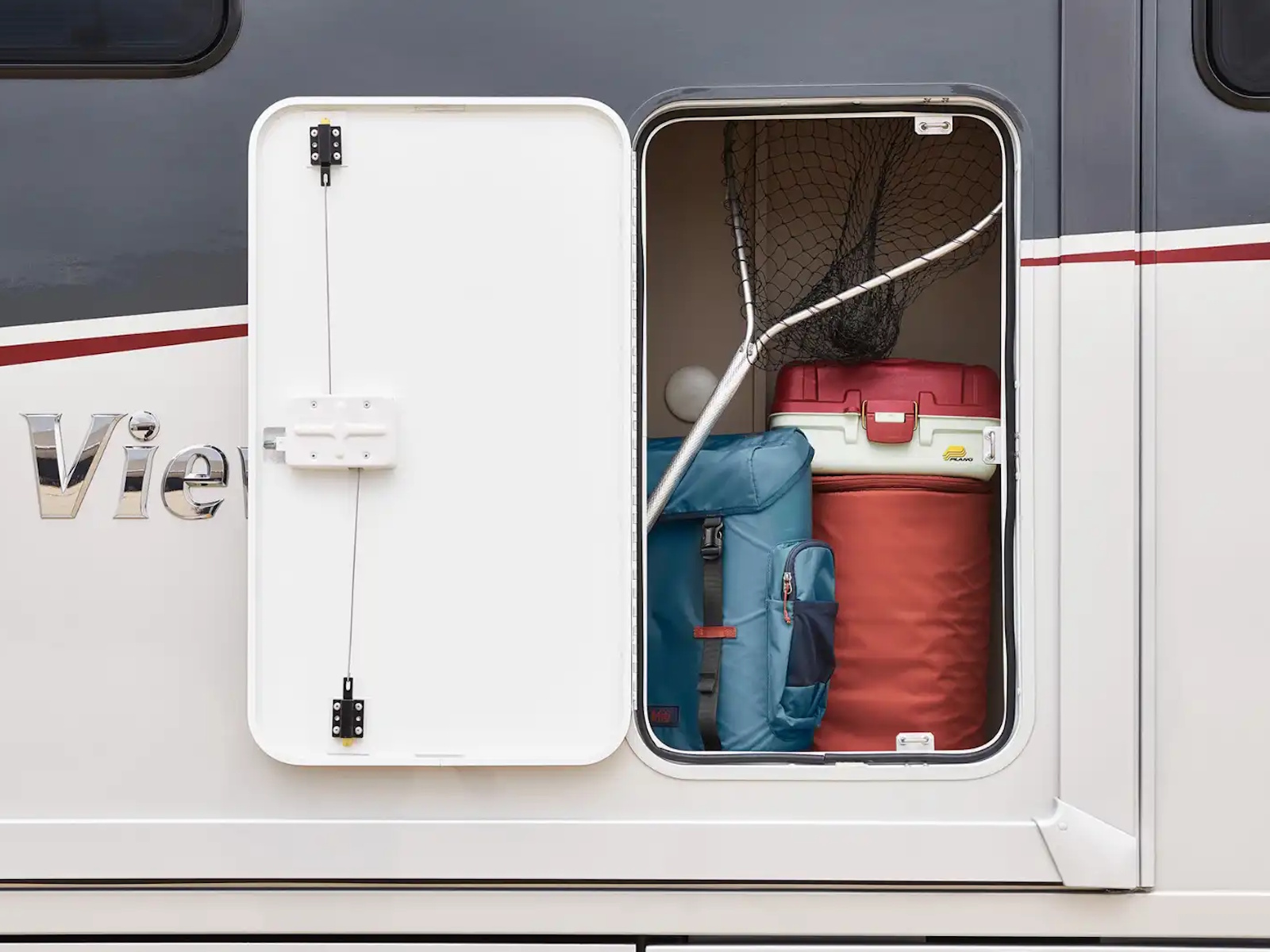 - Service Center w/light, cable TV input, 30-amp. power cord, portable satellite dish hookup, QuickPort® service connection hatch