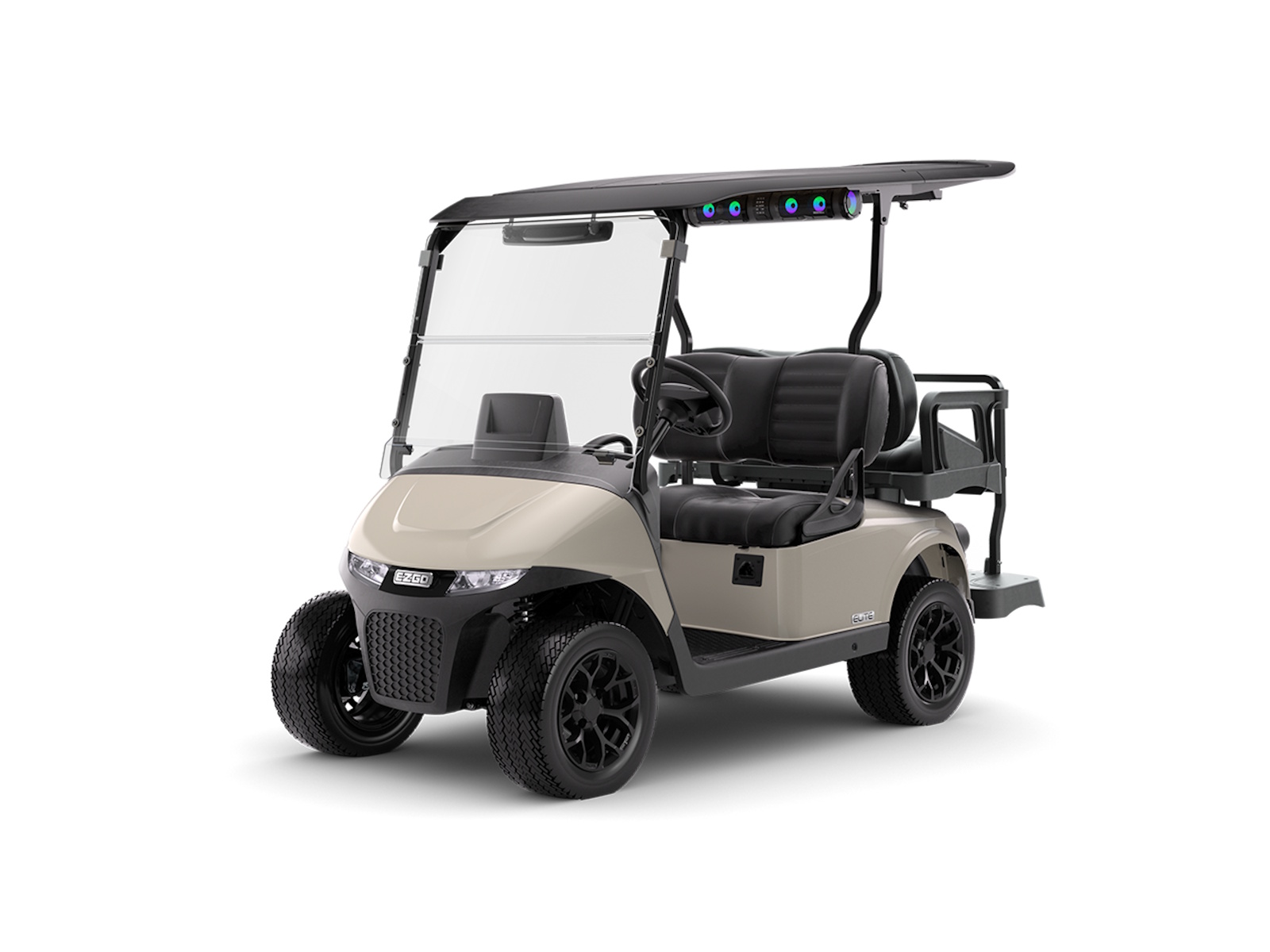 - Now introducing E-Z-GO's all-new luxury seating. The automotive-style seating, with flip down armrests and sculpted foam seats, introduce a new level of elegance to every ride.