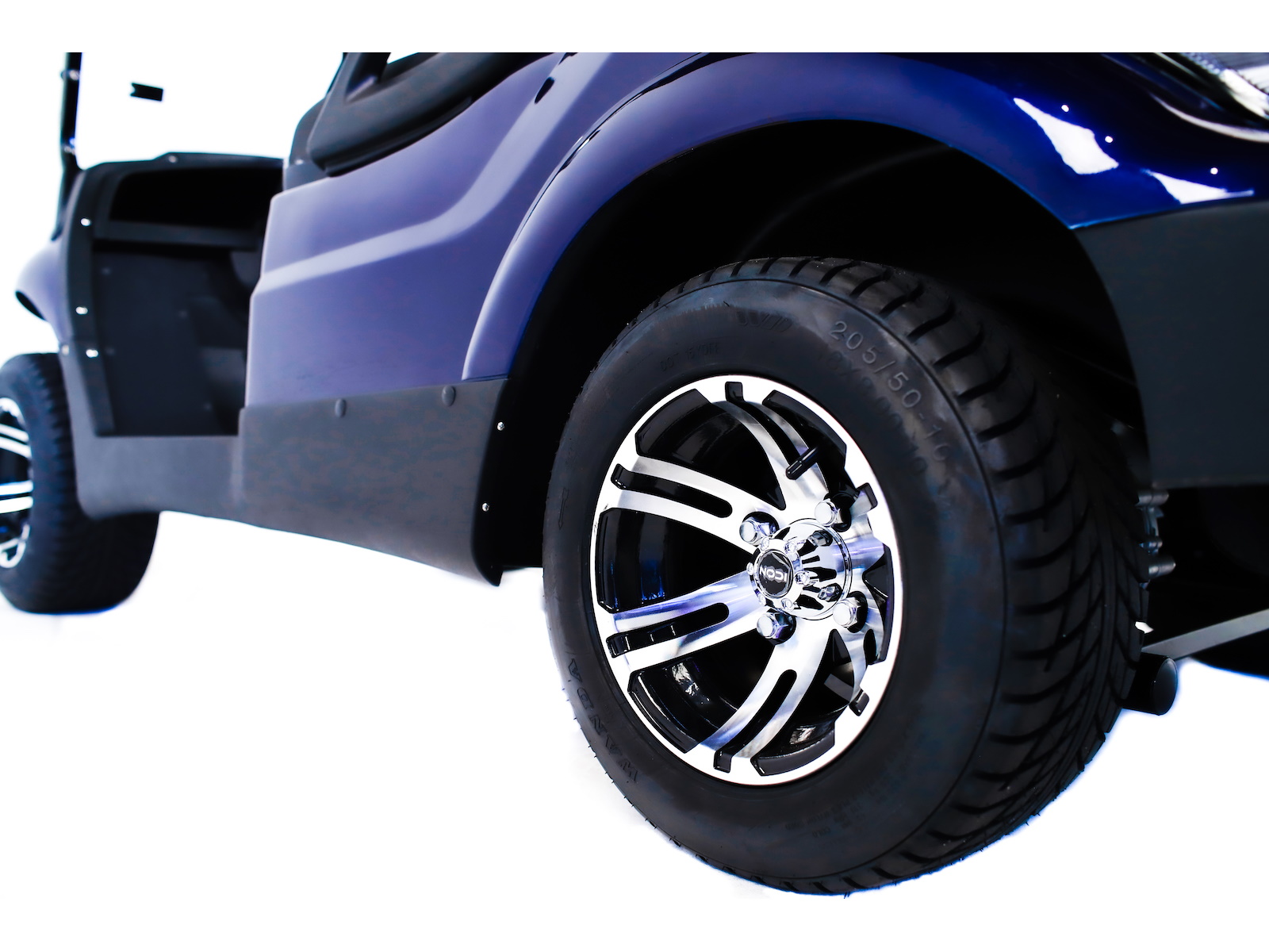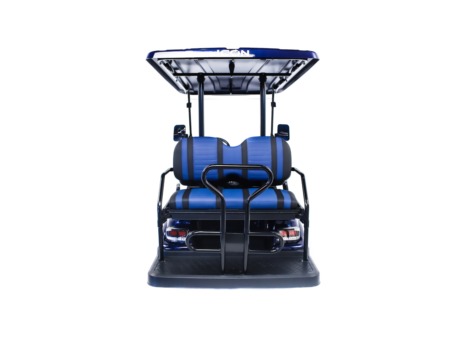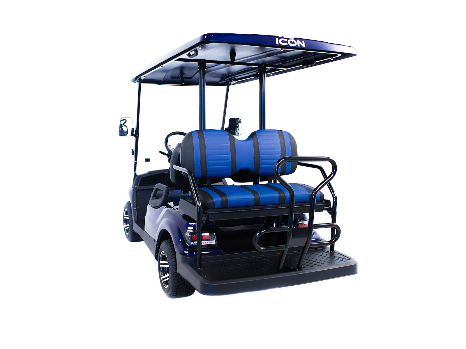 The ICON® i40 four-seater golf cart is the epitome of perfection when it comes to residential and commercial needs. Whether you’re taking your friends to lunch or transporting potential clients’, the ICON® i40 is stylish and extremely comfortable. Plus, it’s loaded with premium features like 12′′ aluminum wheels, 4-wheel disc brakes, powder-coated steel chassis, lights, turn signals, high-speed rear ends, durable front and rear bumpers, painted rooftops, horns, digital gauges, and more!