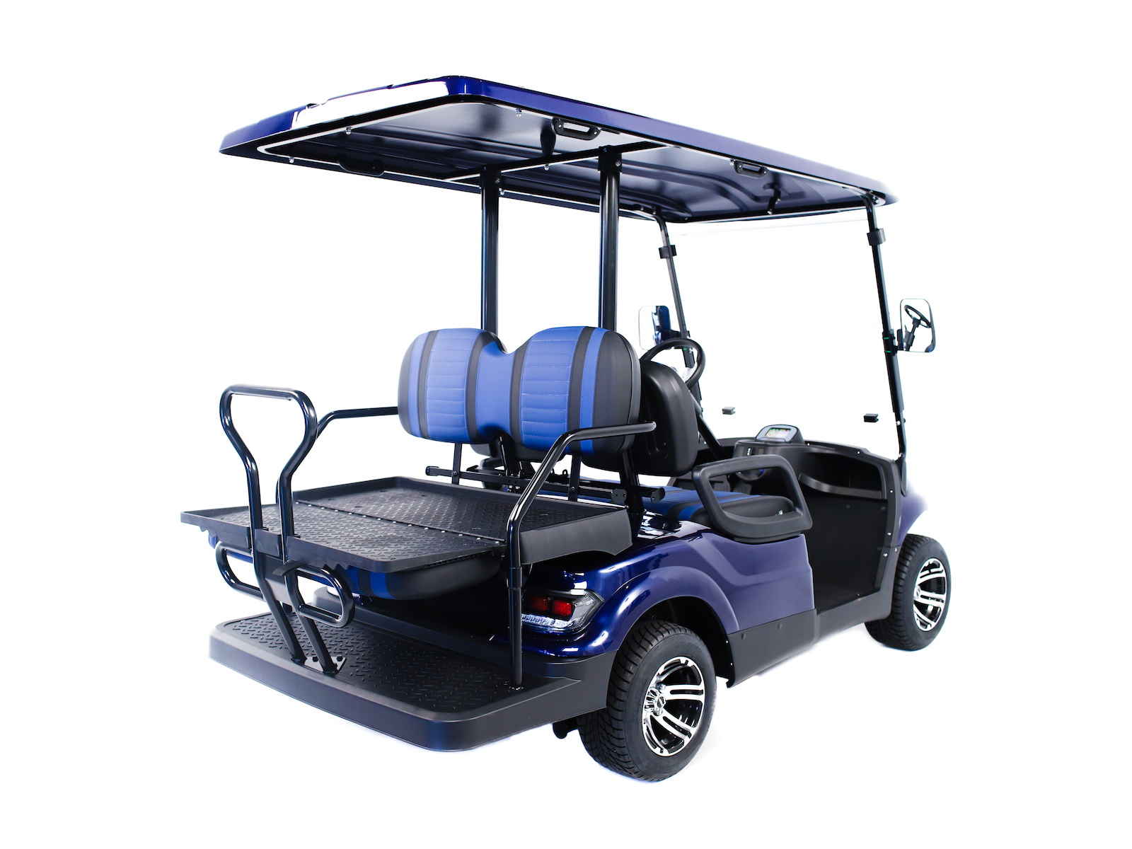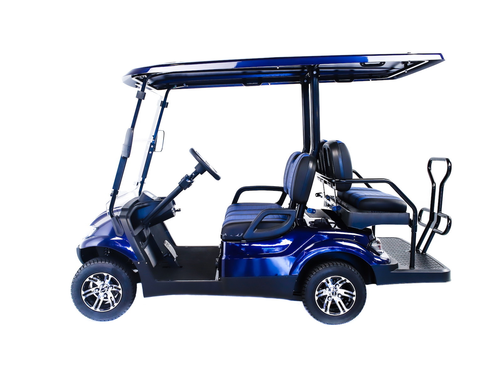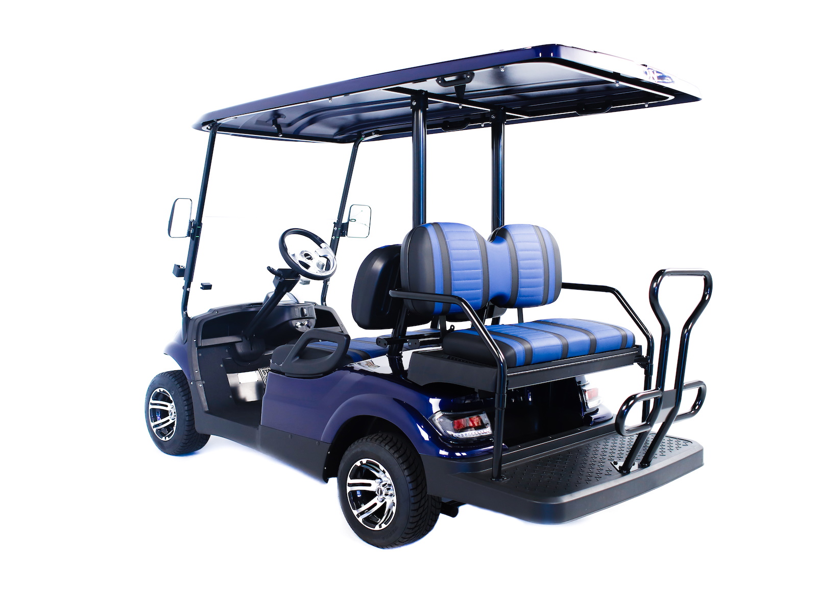 The ICON® i40 four-seater golf cart is the epitome of perfection when it comes to residential and commercial needs. Whether you’re taking your friends to lunch or transporting potential clients’, the ICON® i40 is stylish and extremely comfortable. Plus, it’s loaded with premium features like 12′′ aluminum wheels, 4-wheel disc brakes, powder-coated steel chassis, lights, turn signals, high-speed rear ends, durable front and rear bumpers, painted rooftops, horns, digital gauges, and more!