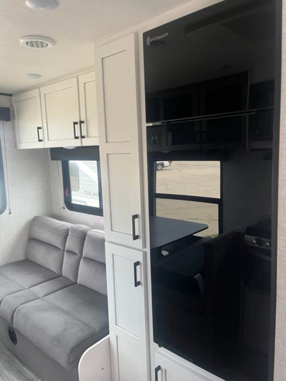 The Jay Flight SLX is so compact and easy to tow, you might just forget you’re pulling a camper behind your vehicle. Although it’s shorter and built on a single axle, the SLX doesn’t skimp on amenities. It has real wood cabinet doors, galvanized steel wheel wells, an integrated A-frame, dark tinted windows for privacy and UV protection and back-up camera prep.