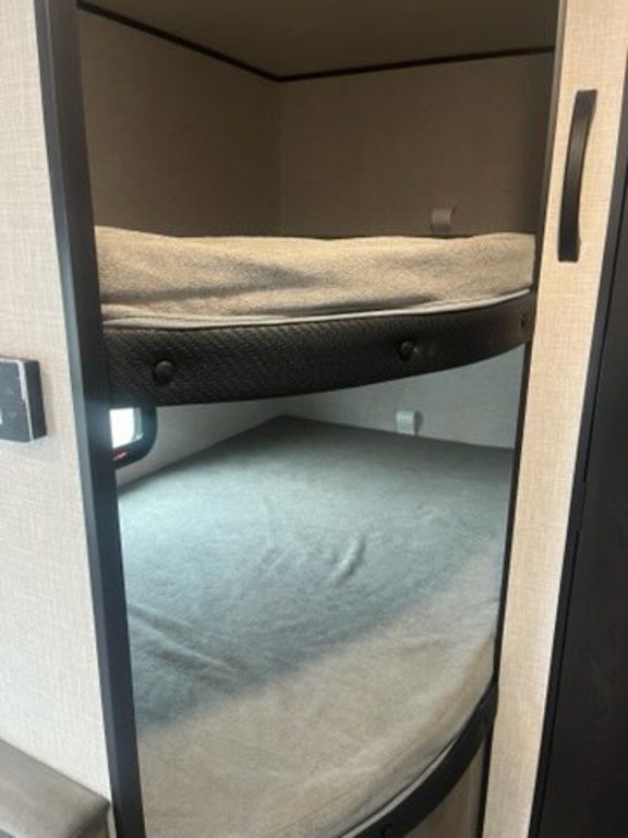 The bunks are another place on the Jay Flight SLX where the design prevents wear and tear over time. Jayco has the largest travel trailer bunk weight capacity in the industry (300 lb. weight capacity for a single bunk and a 600-lb. for double bunks). You can safely and soundly use these for sleeping arrangements, or as extra space for storage.