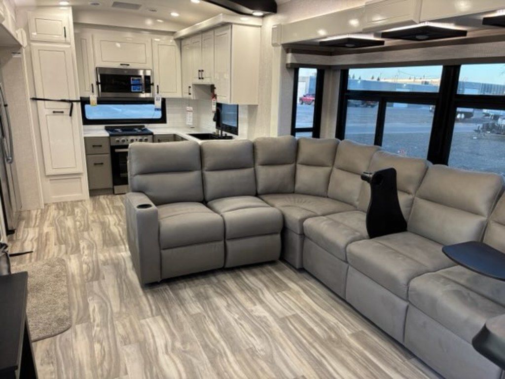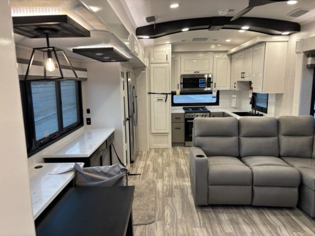 Our top-of-the-line luxury fifth wheel, the Jayco Pinnacle, gets a host of upgrades for 2025, including an all-new front wardrobe design with pull-out drawers, a laundry hamper and a separate washer and dryer compartment. Additionally, the luxury doors, drawers, and stiles are crafted from real residential hardwood maple. All the things you’re used to having at home are now available in the Pinnacle.