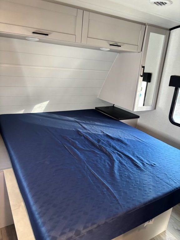 Camping has never been more comfortable than in the 2025 Jay Feather. This lightweight travel trailer is full of amentities, offers the same great interior decor you know and expect from Jayco, and a number of floorplans that are sure to fit your lifestyle. The bedroom in this RV is arguably one of the most comfortable places in the unit. For being a smaller travel trailer, its open-front bedroom features increased window sizes and 60- x 80-inch queen size bed, allowing for natural light a great walk-around space. Most Jay Feather floorplans now offer an optional 72- x 80-inch king bed; you truly will feel right at home on the road.