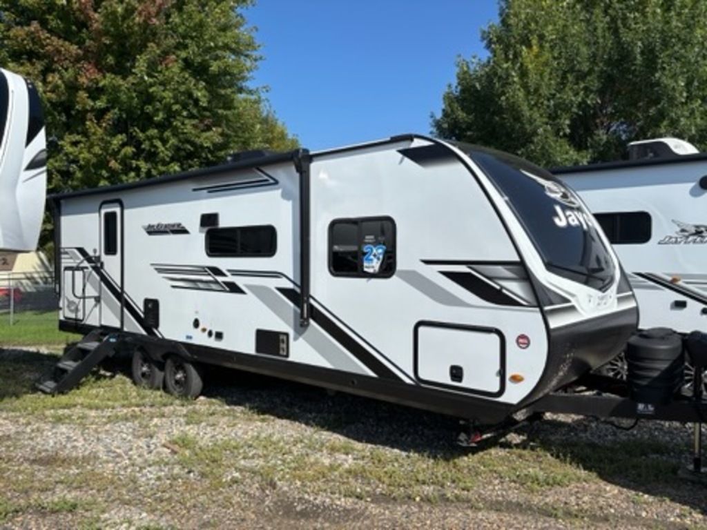 From the light interior decor to the many standard amenities, this lightweight travel trailer is fully equipped for all of your adventures, while offering the comforts of home. Relax, unwind and float through the day in the ever-accommodating 2026 Jay Feather Travel Trailer.